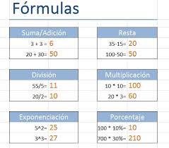 - Divisiones: La fórmula es =A2/C2